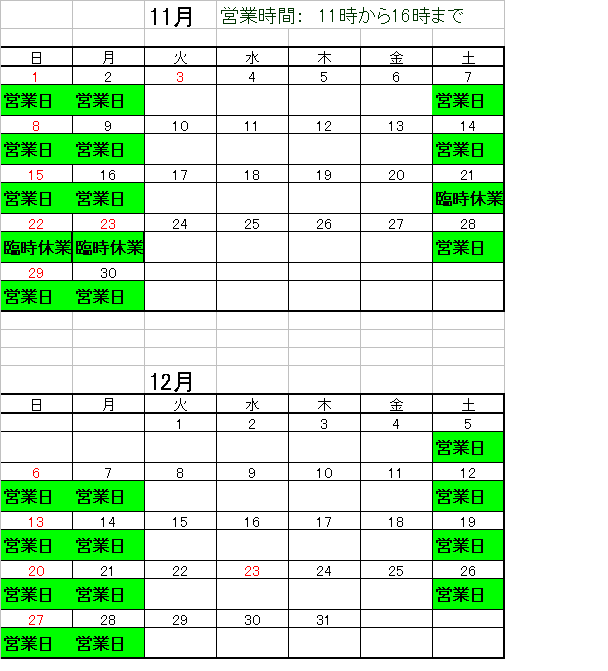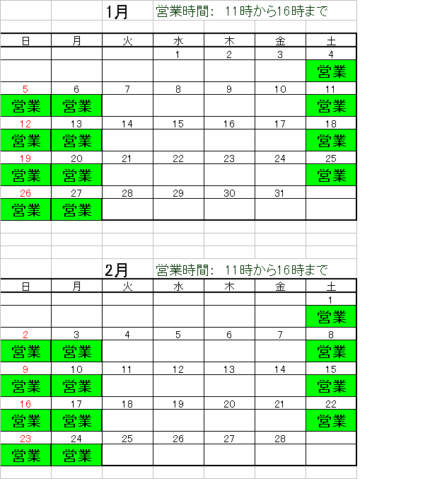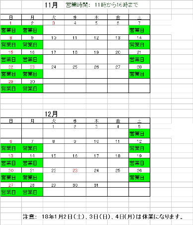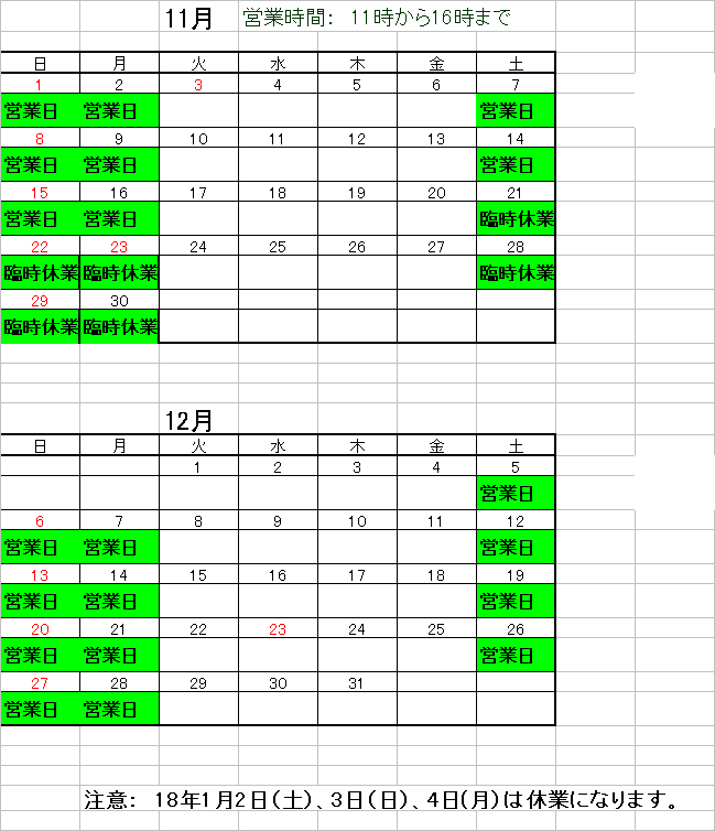 12/31(土)、1/1(日)、1/2(月)は休業になります。